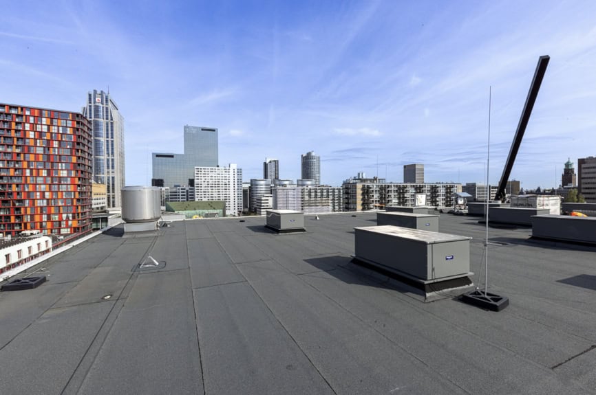 Es besteht aus zehn unterschiedlichen Dachflächen, von denen ein Teil in ein Gründach umgewandelt wurde, während ein anderer Teil mit Solarmodulen ausgestattet ist. Auch die Anpassungen am Regenwasser-Entwässerungssystem, sowohl oberhalb als auch unterhalb des Dachs, gehören zu unserem Leistungsumfang. Darüber hinaus wurde die bestehende Absturzsicherung angepasst und bei Bedarf in Teilen ersetzt oder erweitert, um den aktuellen Sicherheitsstandards zu entsprechen.